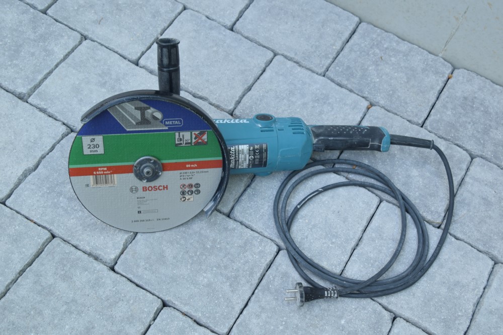 mit Diamantscheibe für Stein oder Trennscheibe für Metall
